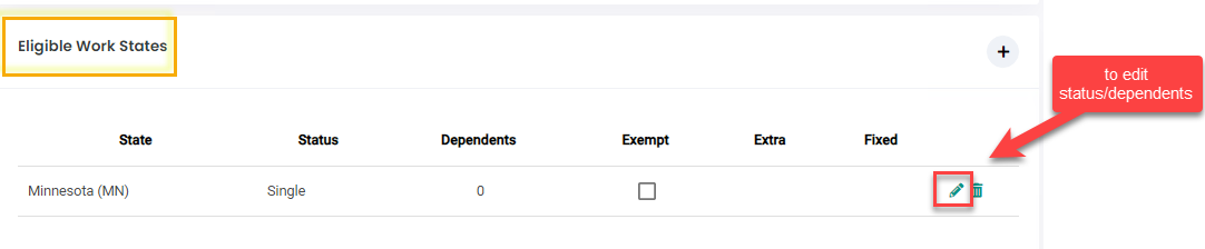 To update the filing status (ie Single/Married) and/or number of dependents, please use the Eligible Work States box (below)